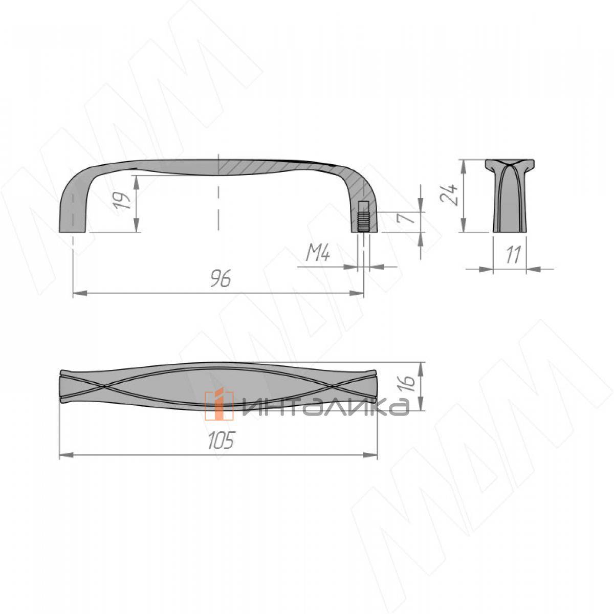 SERPENTE Ручка-скоба 96мм серебро состаренное, BH.68.096.AP