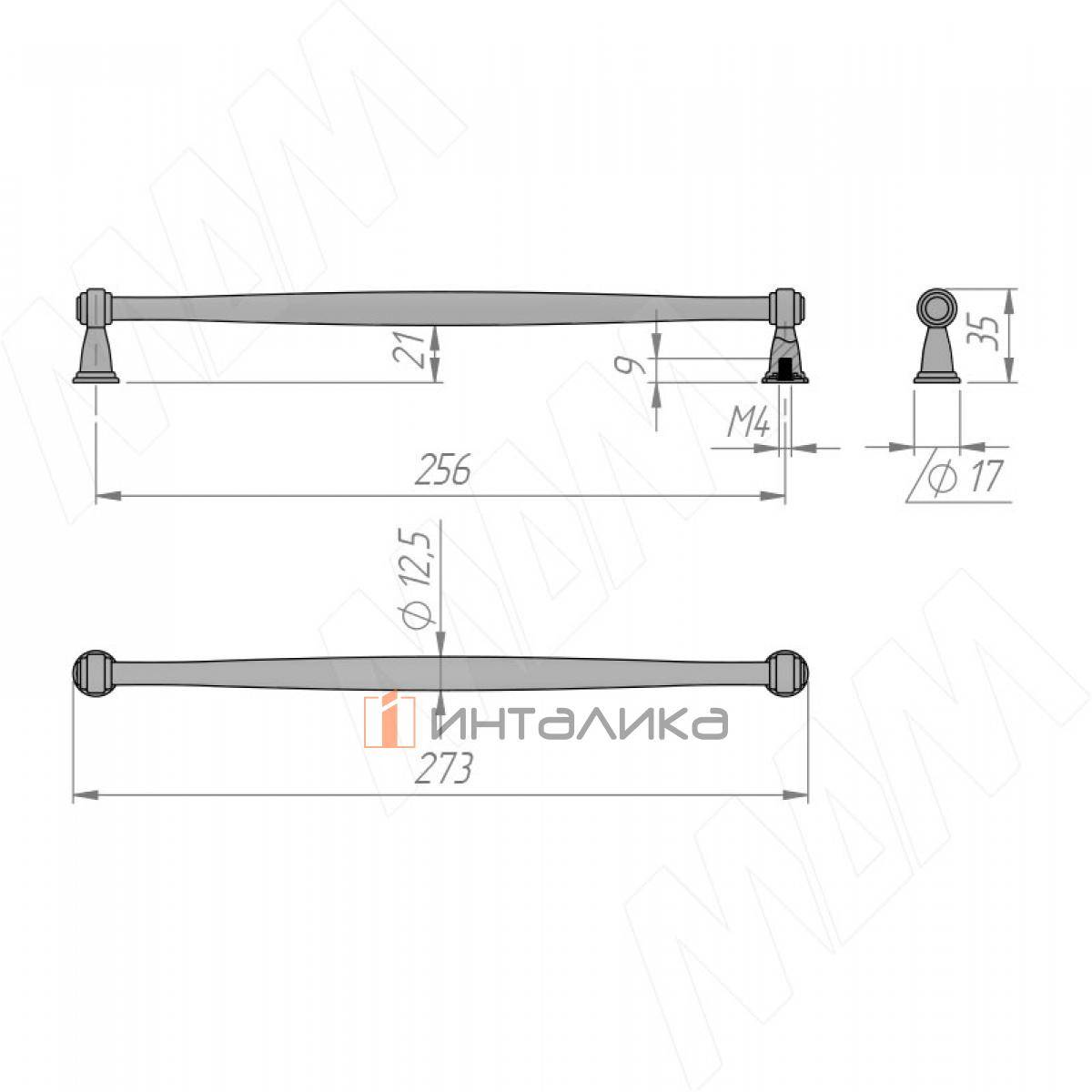 Ручка-рейлинг 256мм хром, RH.04.256.PC
