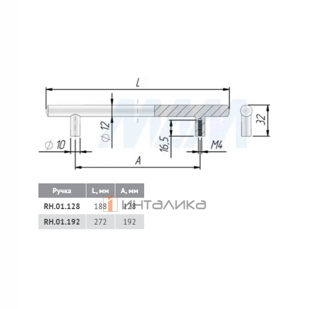 Ручка-рейлинг 192мм белый матовый, RH.01.192.WTM