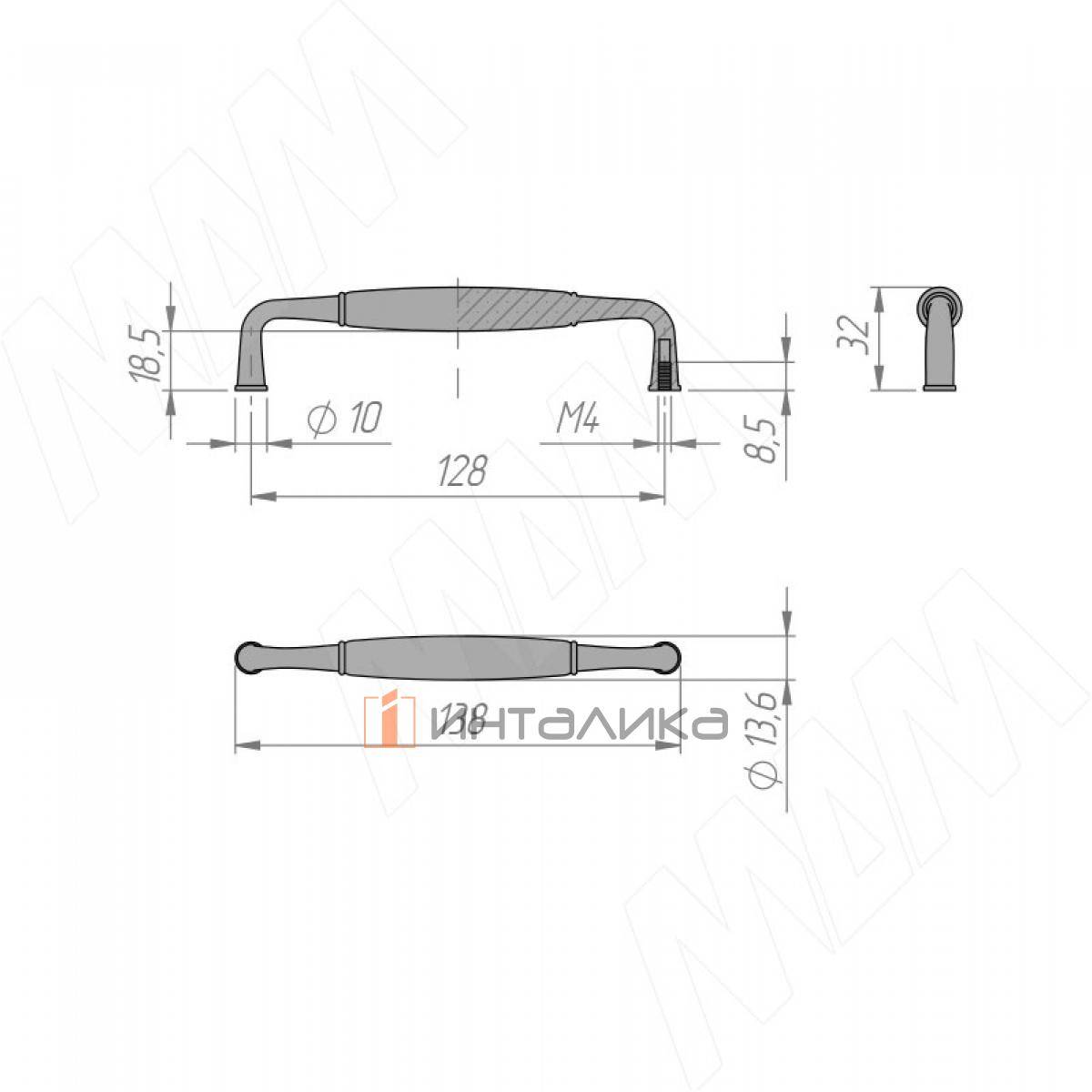 SCANDI Ручка-скоба 128мм черный матовый/керамика, BH.63.128.BLM