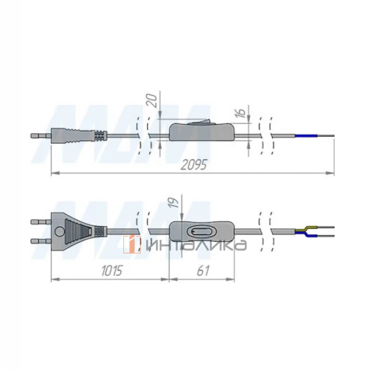 Дополнительная информация: на одном конце шнура — вилка, на другом — оголенные провода, которые могут быть закреплены в клеммную колодку, на вход блока питания или в разъёмы на светильнике