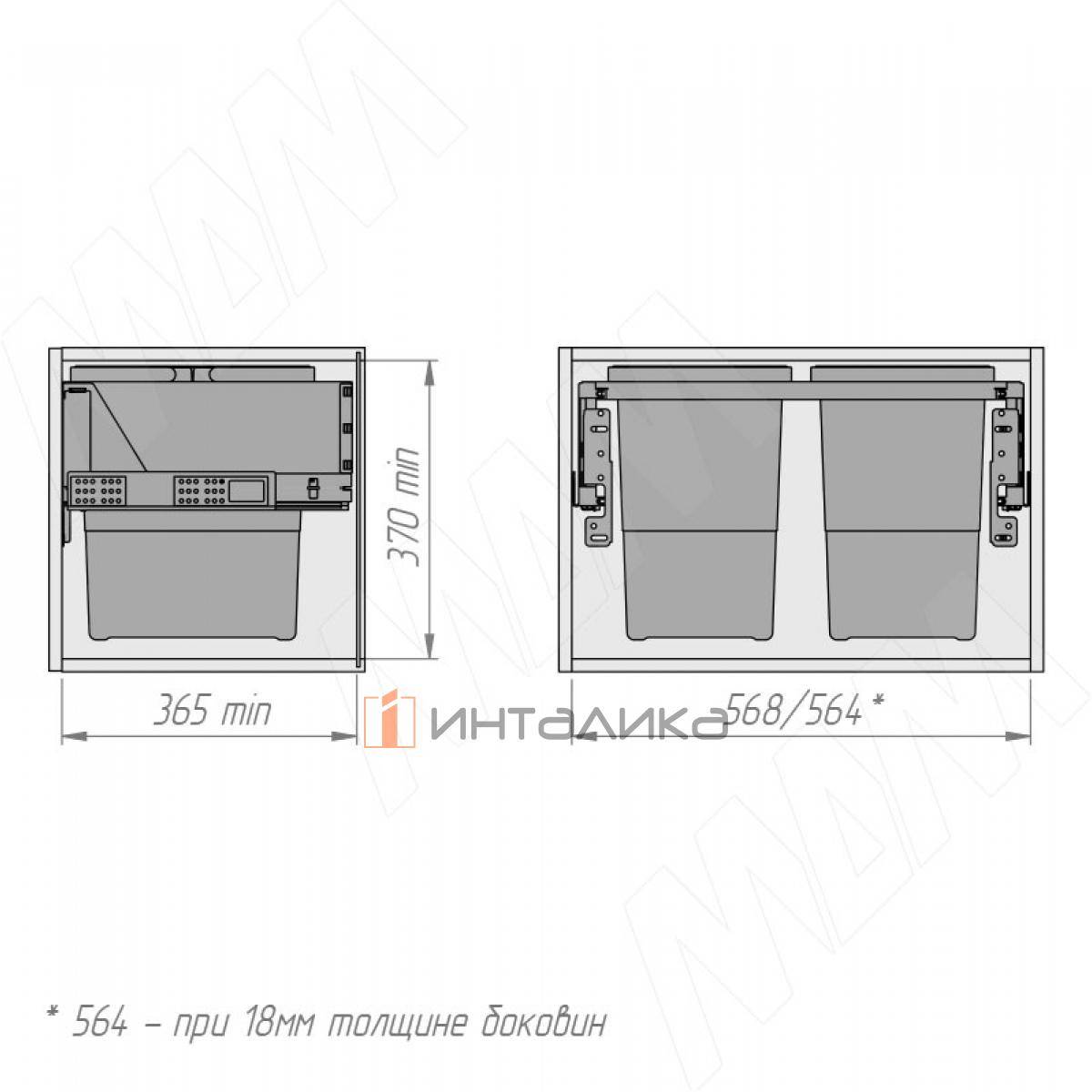 BLOCK 2.0S Система сортировки и хранения, фасад 600мм, 2 емкости (18л+18л), крепление к боков., напр.полн. выдвиж., плавн. закр., PBR A3560A