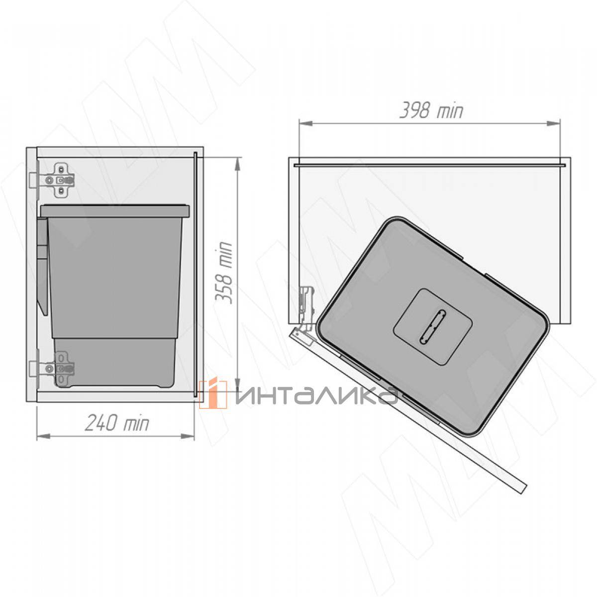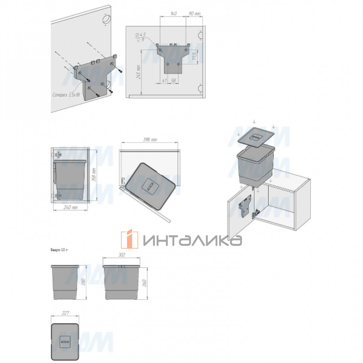 Комплектация: ведро с ручками, крышка, крепление к фасаду, крепёж