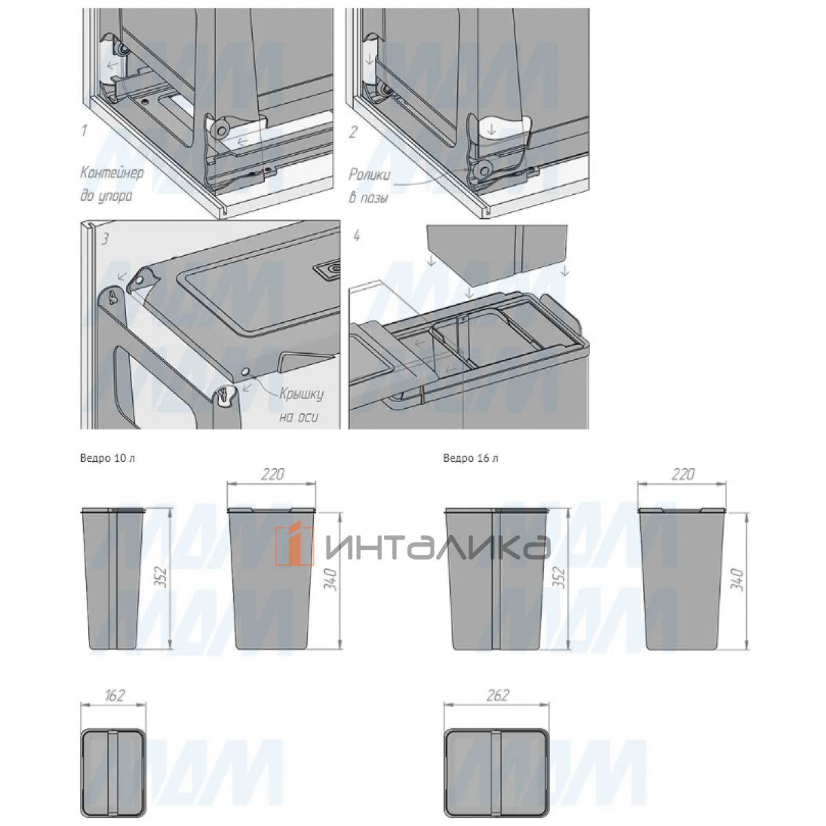 Комплектация: корпус в сборе — 1 шт., ведро с ручкой — 2 шт., крепёж — 1 компл.