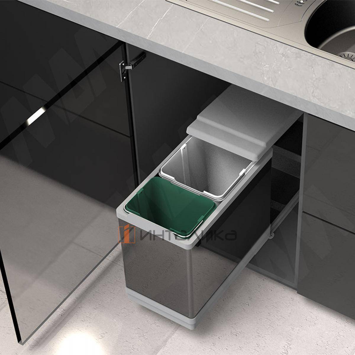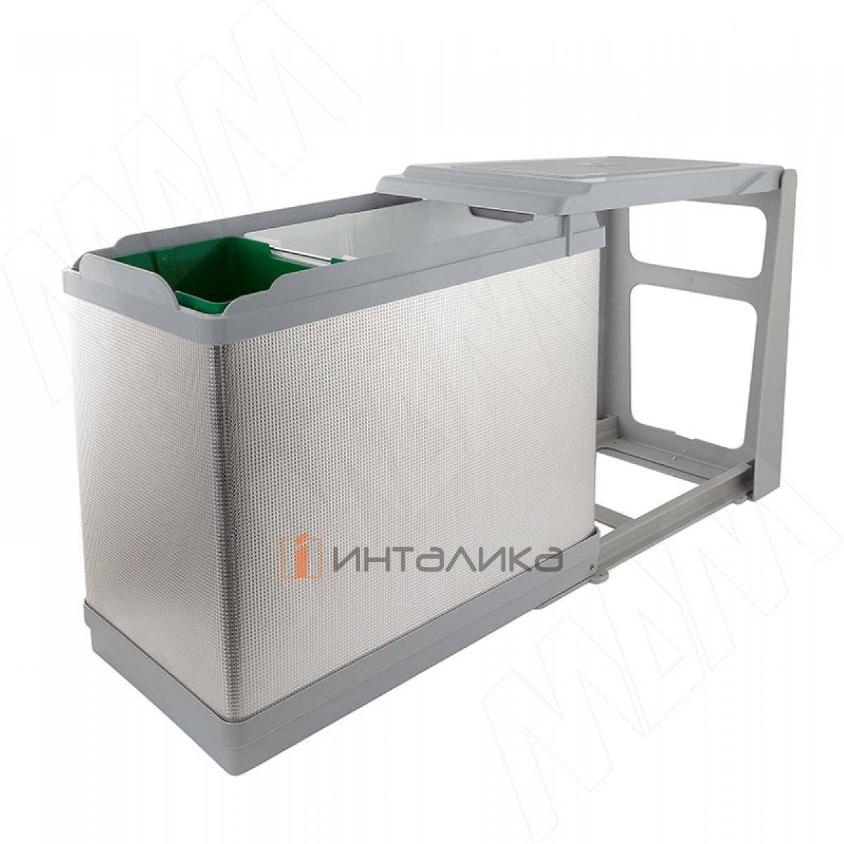 TOWER Система сортировки и хранения, 2 емкости (16л+10л), авт. крышка, нижнее крепление, пластик+алюминий, PAL605/1 ALL