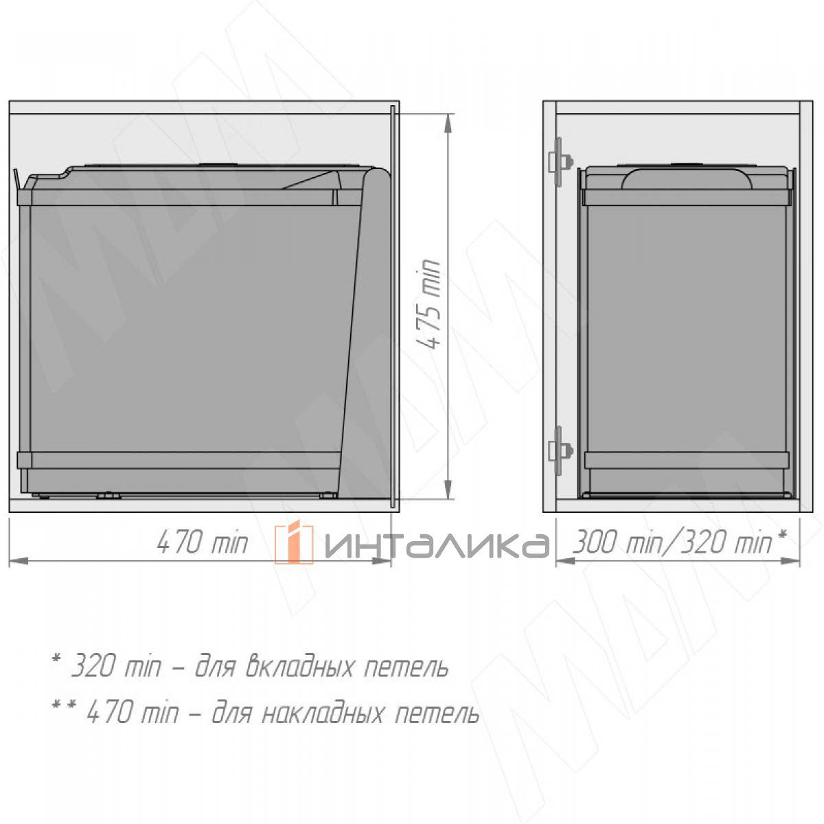 • используется с распашным фасадом;