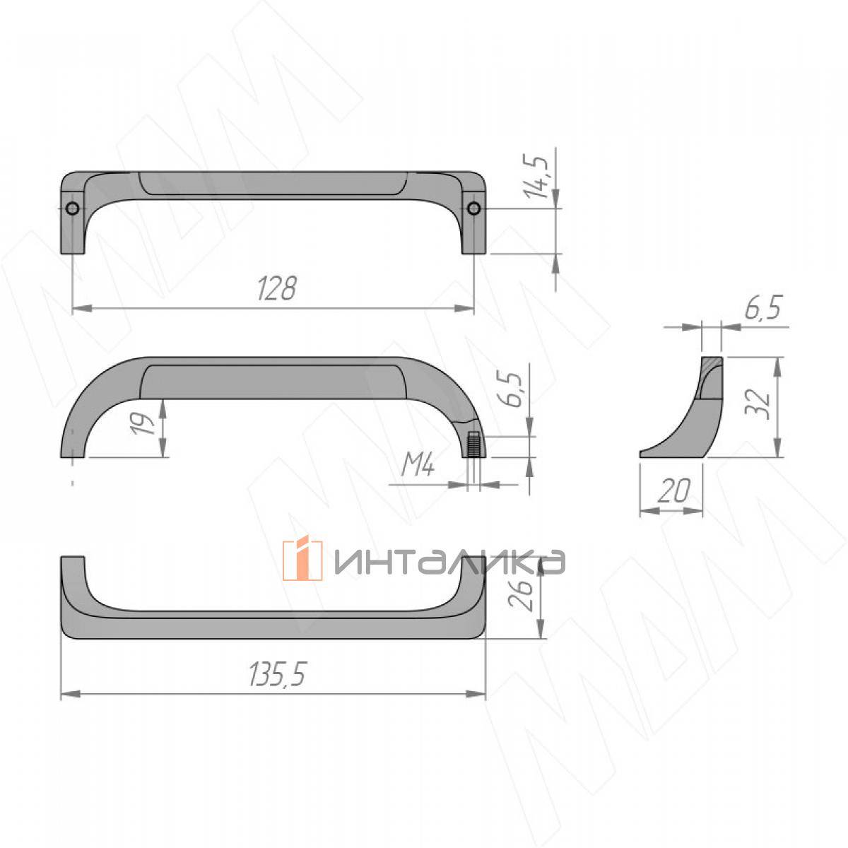 Комплектация: ручка, винт М4×25 мм