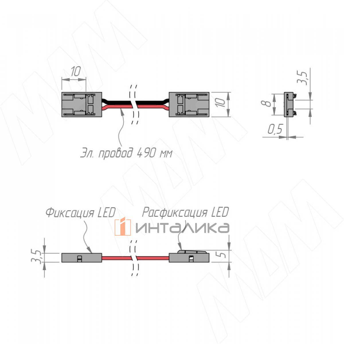 Применение: коннектор позволяет соединять два отрезка светодиодной ленты SMD шириной 8 мм