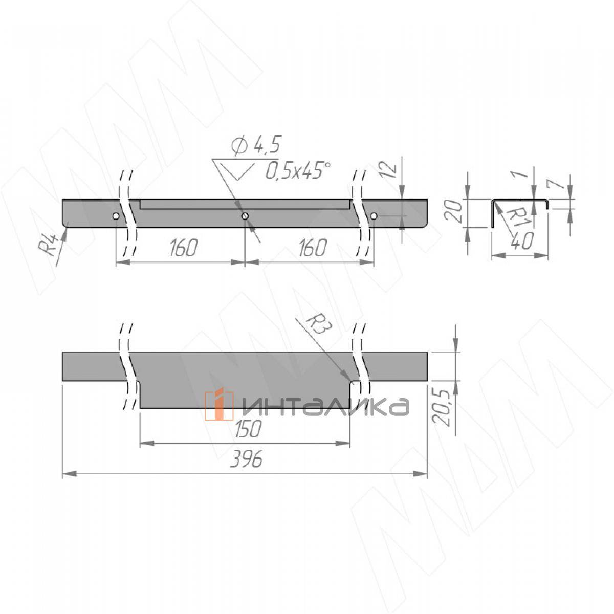 Профиль-ручка 396мм крепление саморезами черный матовый, PH.RU22.400.BL