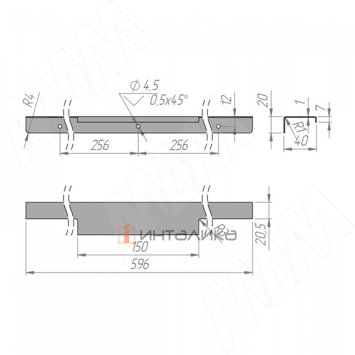 Профиль-ручка 596мм крепление саморезами черный матовый, PH.RU22.600.BL