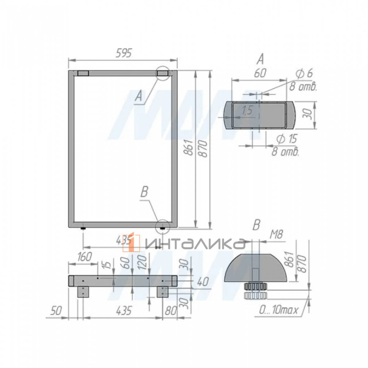 Комплектация: опора, ножка регулируемая — 2 шт.