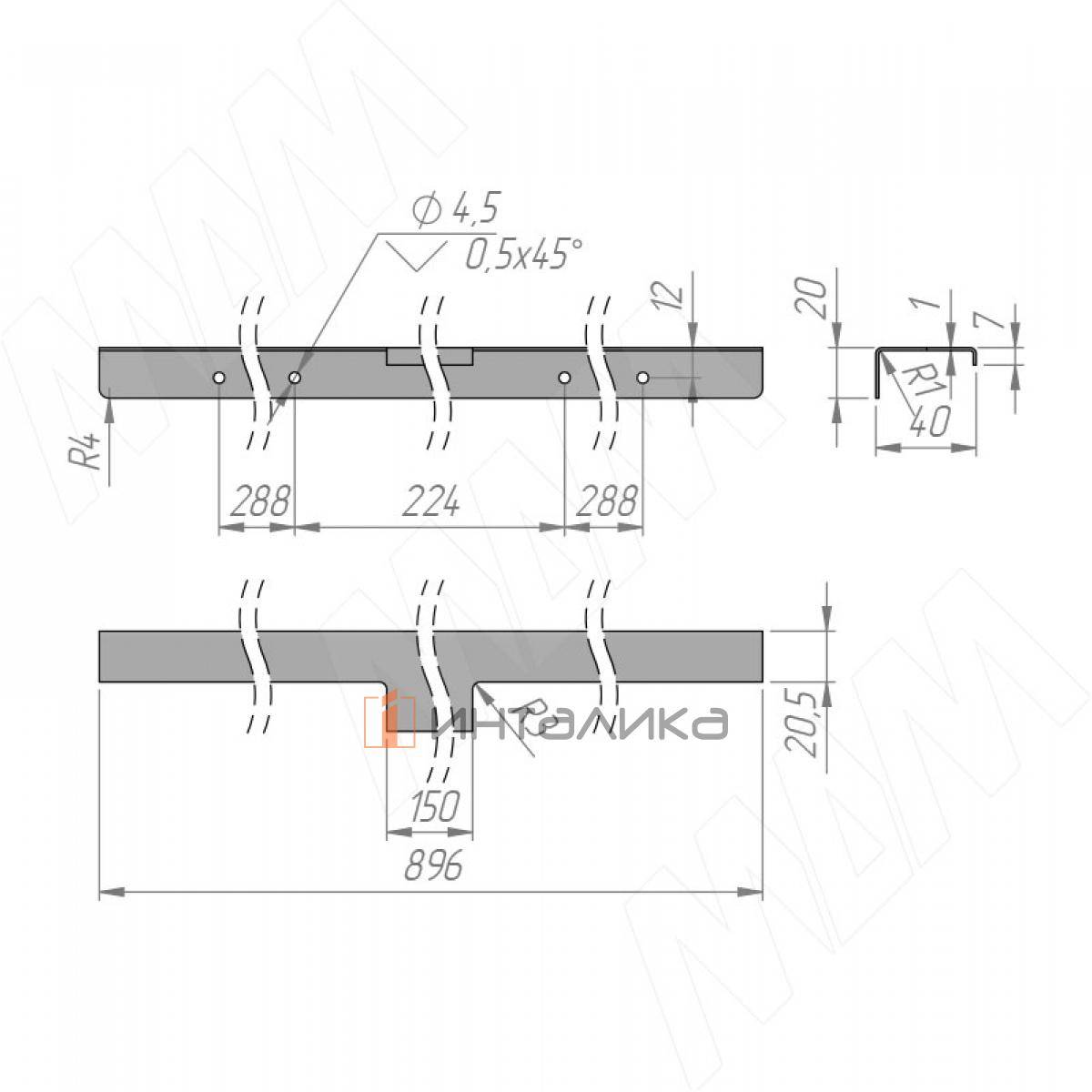 Профиль-ручка 896мм крепление саморезами золото матовое, PH.RU22.900.GL