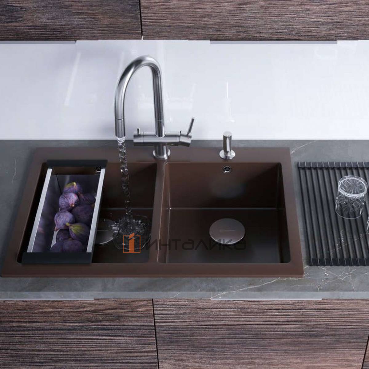 Мойка Omoikiri BOSEN 80-2 Tetogranit, 800, накладная, черный, 4993836