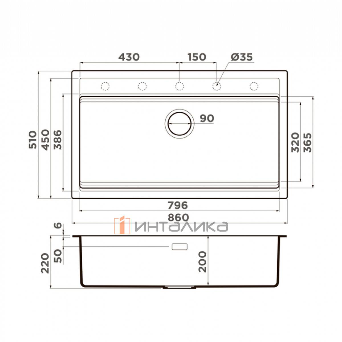 Мойка Omoikiri KITAGAWA 86-LB Artceramic, 900, накладная, azur blue, 4993026