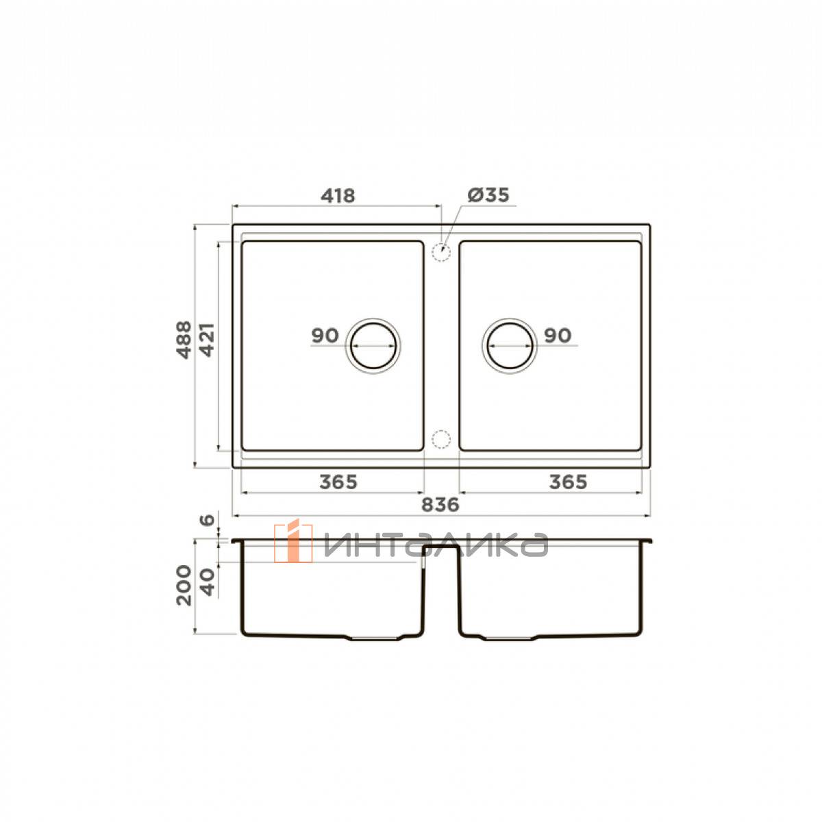 Мойка Omoikiri KITAGAWA 83-2-U Artceramic, 900, под столешницу, белый, 4993809