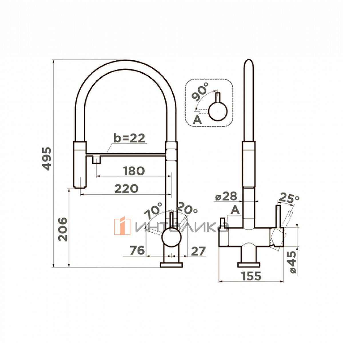 Смеситель Omoikiri KANTO однорычажный, с выводом питьевой воды, с гибким шлангом, светлое золото, 4994014