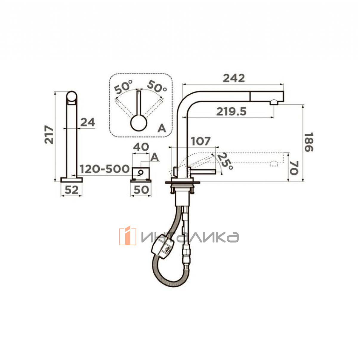 Смеситель-трансформер Omoikiri NARA-S установка под окно, с выдвижным шлангом, графит, 4994371