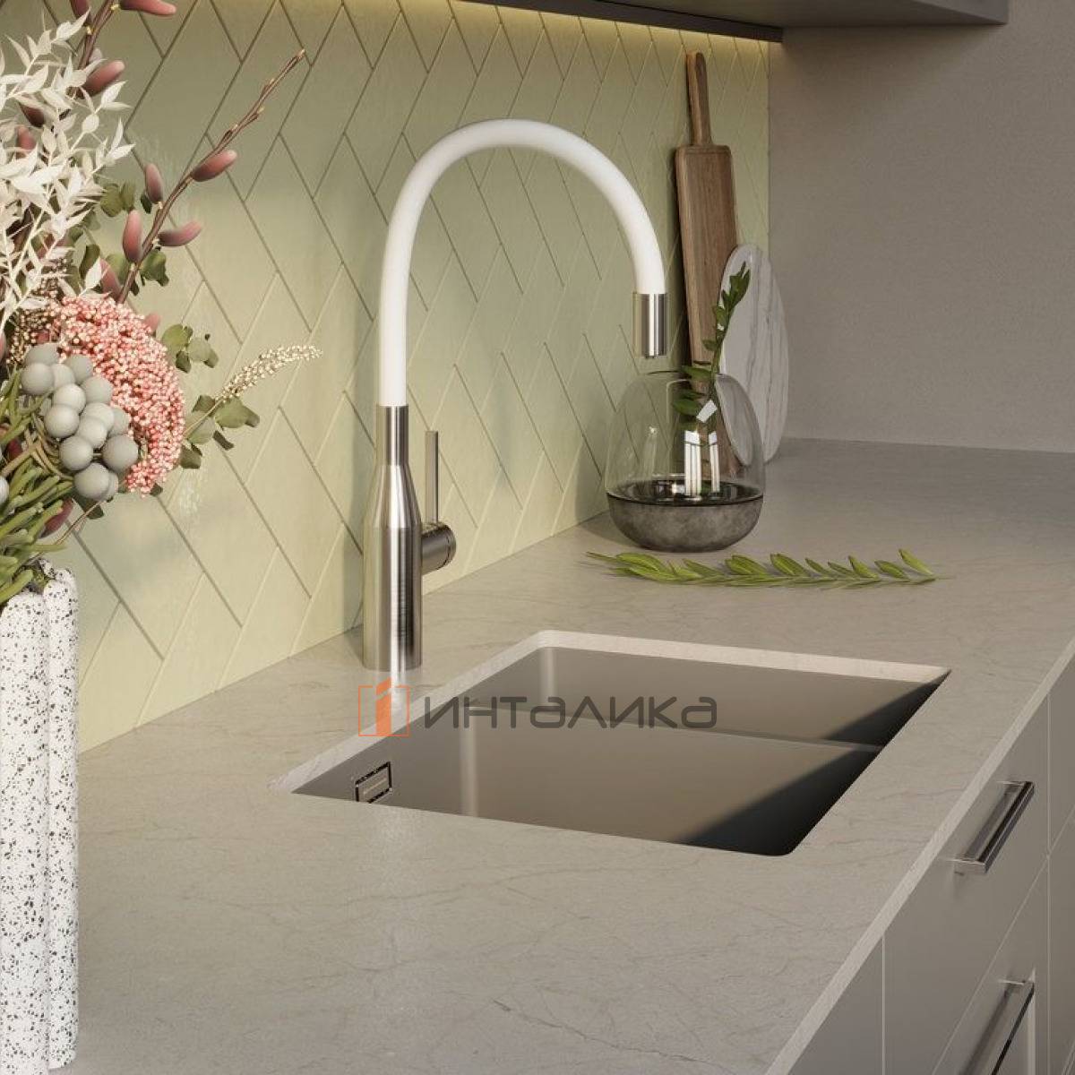 Смеситель Omoikiri YATOMI 2 Plus с выводом для питьевой воды, с гибким шлангом, нерж сталь|белый, 4994345