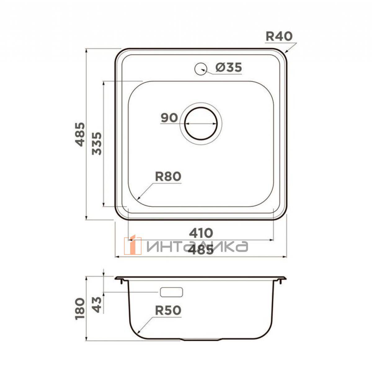 Мойка Omoikiri NOTORO 48 нержавеющая сталь, 500, накладная, нержавеющая сталь матовый, 4997437