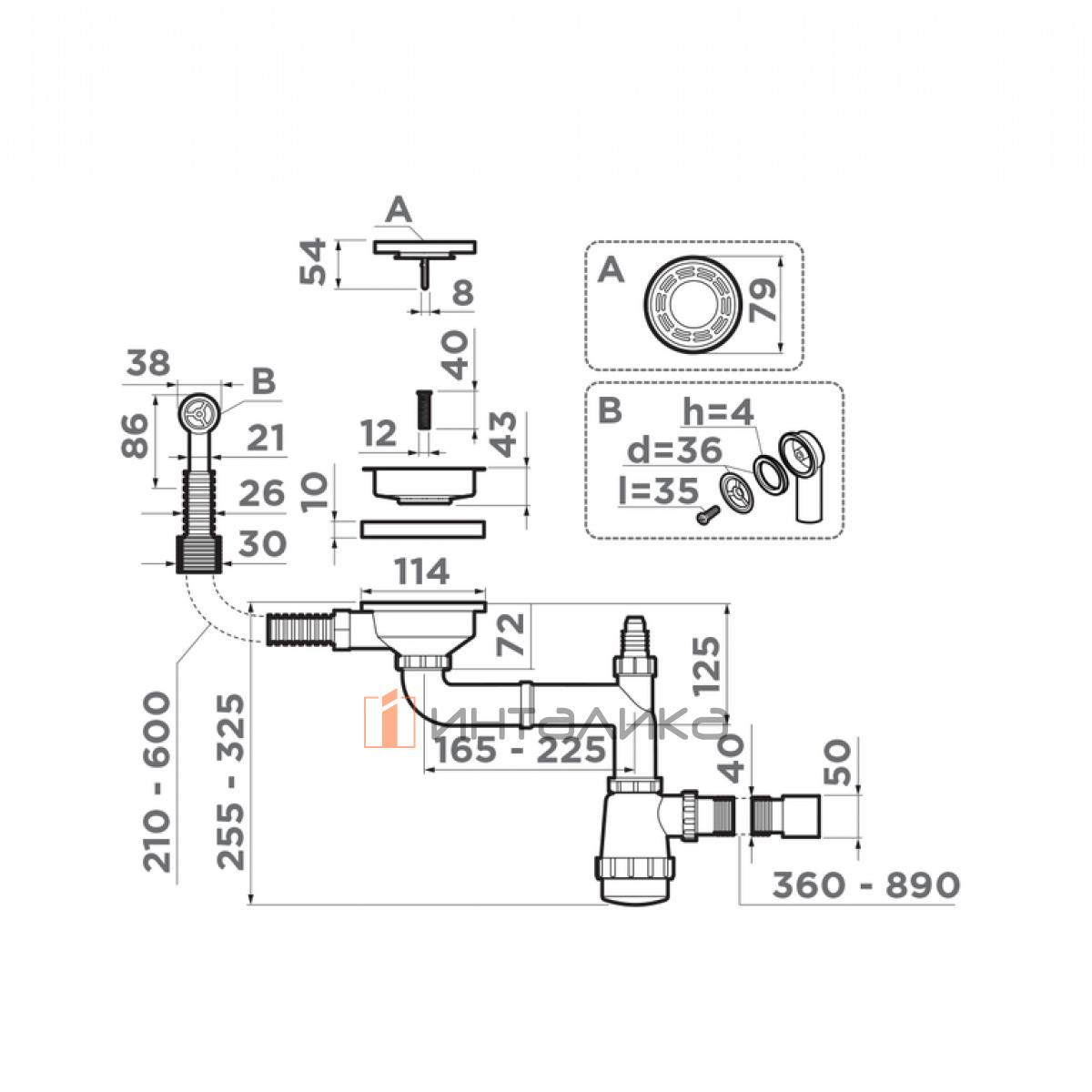 Арматура для одночашевых моек с круглым переливом Omoikiri WK-1-R AB, нержавеющая сталь, 4956486
