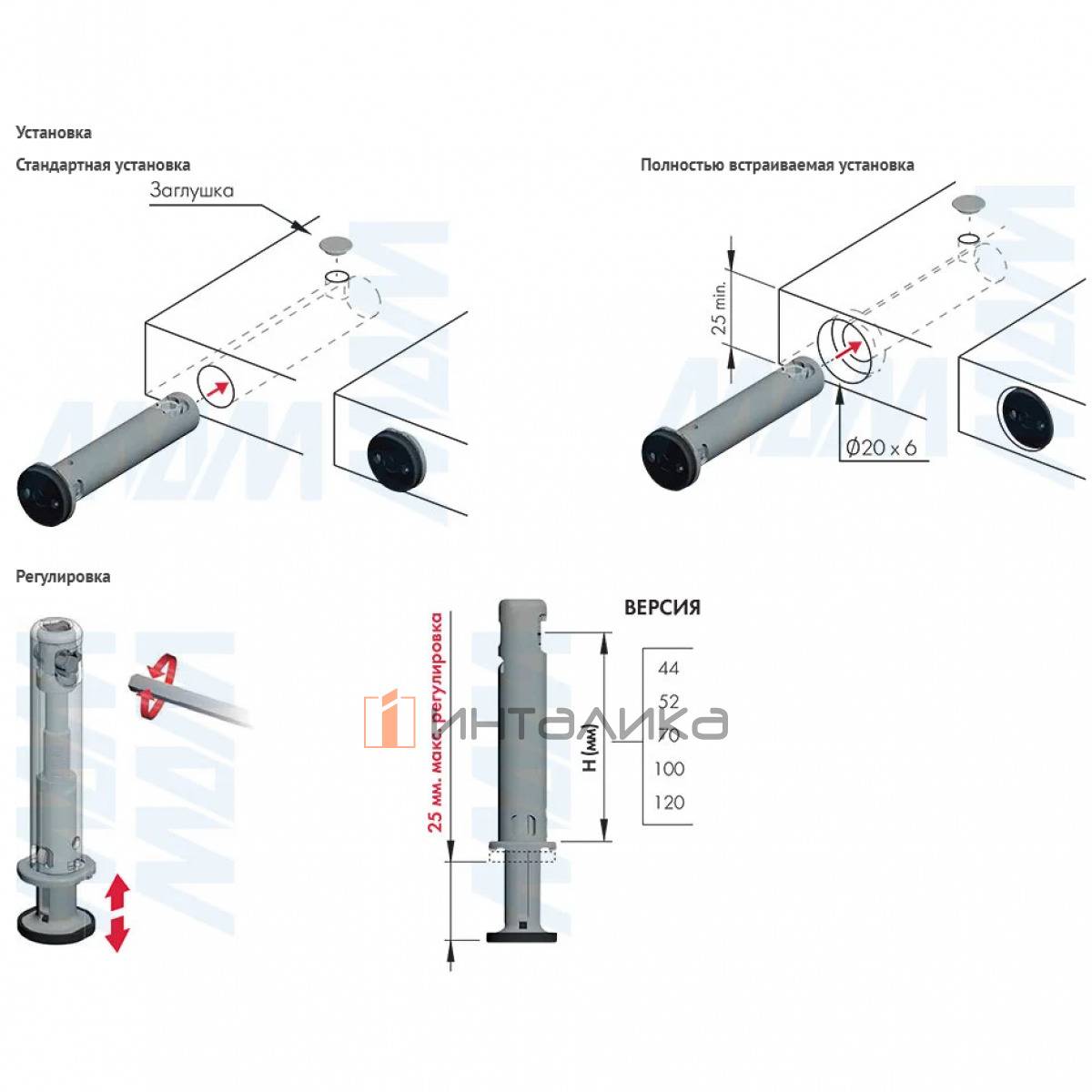 Высота до центра отверстия: 44 мм