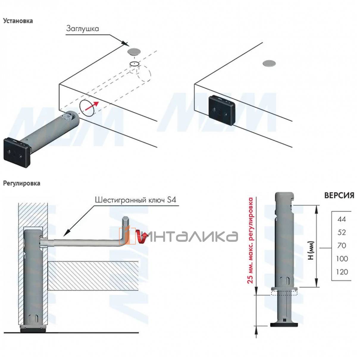 Высота до центра отверстия: 44 мм