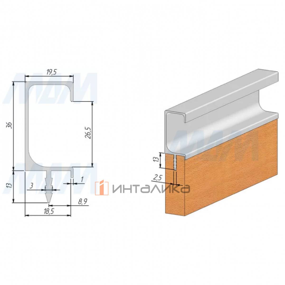 Профиль-ручка врезная для фасада 18мм, черный матовый (анод), L-3000мм, PH.RU08.3000.7W PR