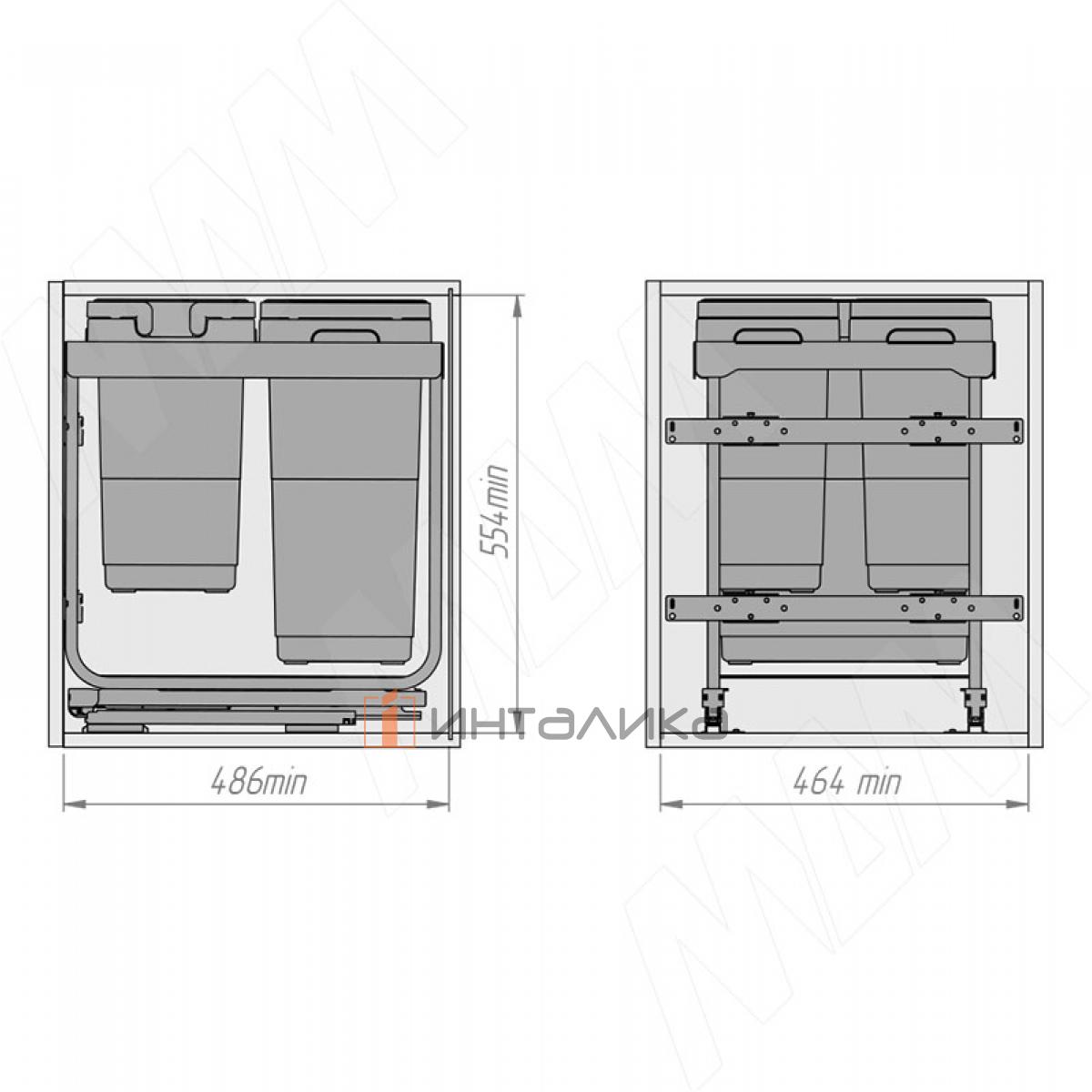 KOMBI 2.0 M50W Система сортировки и хранения, 3 емкости (30л+10л+10л), креп. фасада, полн.выдв., пла, KOMBI2GME503SCGM