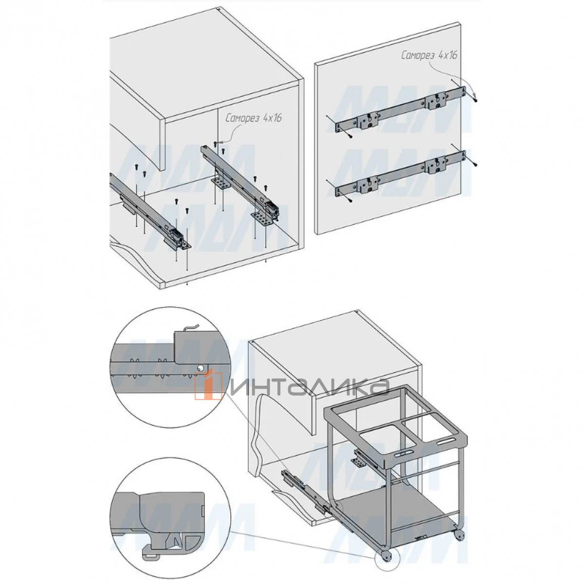 Комплектация: комплект рамы — 1 шт., крепление фасада — 2 шт., ведро — 3 шт., ручка — 3 компл., направляющие — 1 компл.