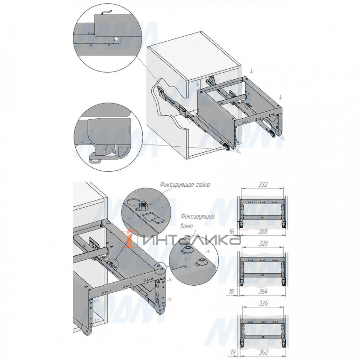 • используется с выдвижным типом фасада (крепления к фасаду в комплекте);
