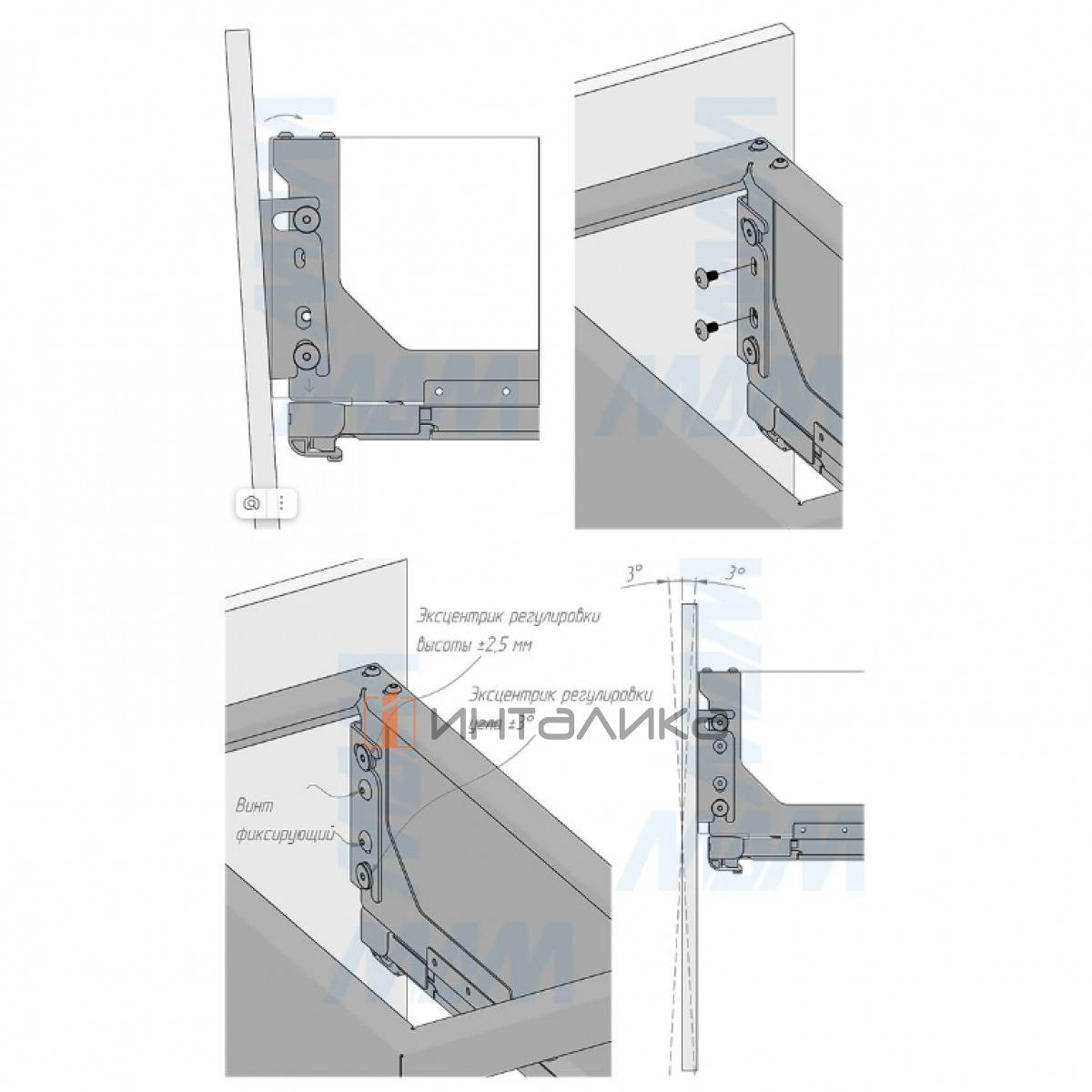 • регулировка фасада в 3 плоскостях;