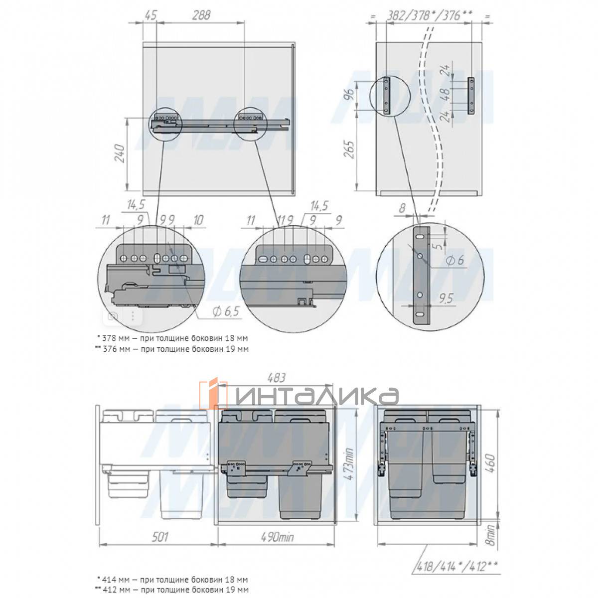 • используется с выдвижным типом фасада (крепления к фасаду в комплекте);