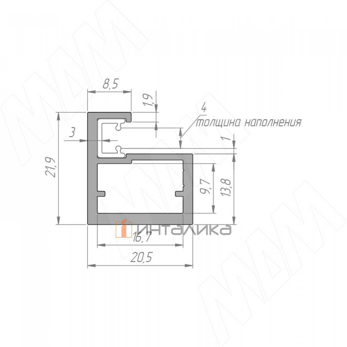Профиль используется с четырехшарнирными петлями и уголками для узкого рамочного профиля.