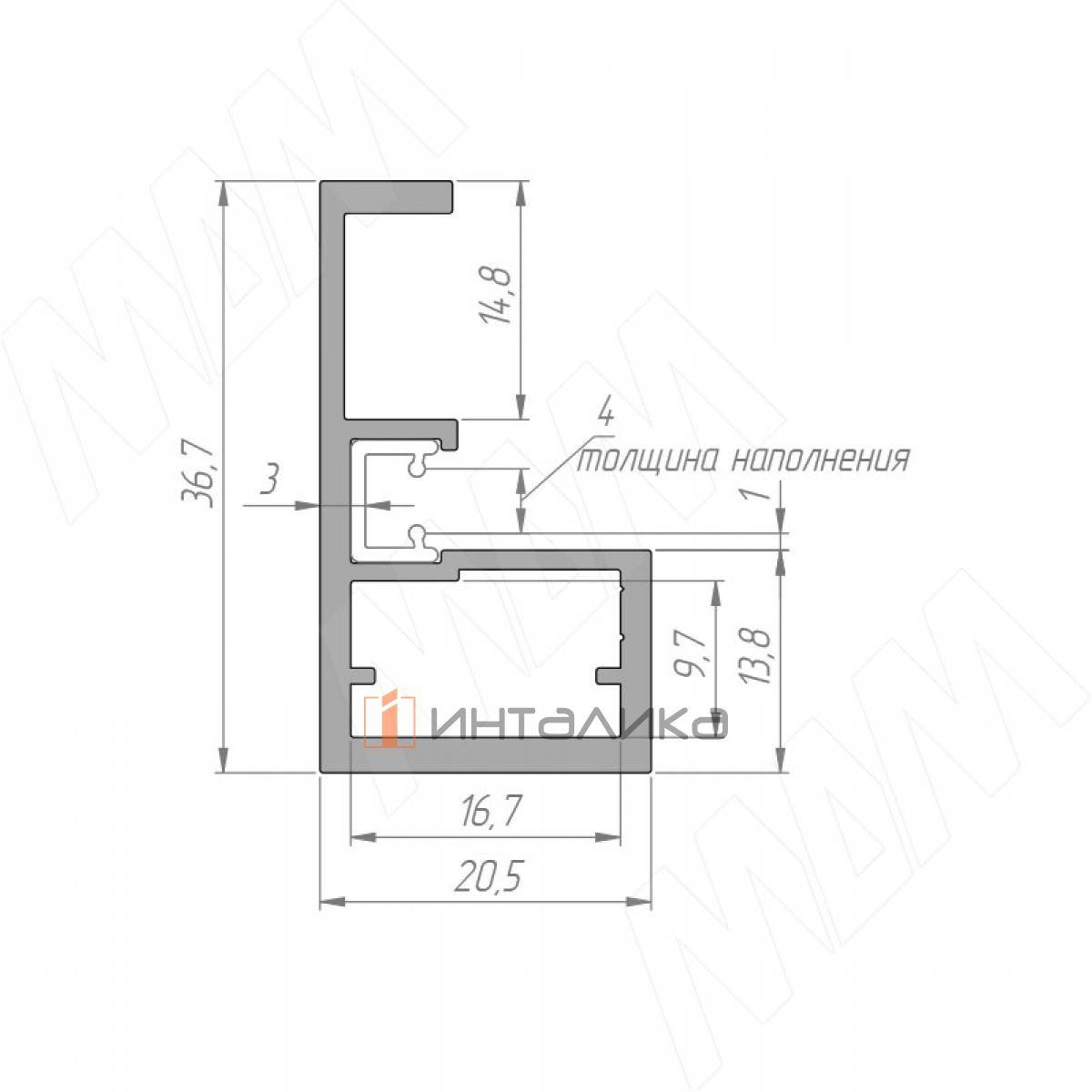 Профиль используется с четырехшарнирными петлями и уголками для узкого рамочного профиля.
