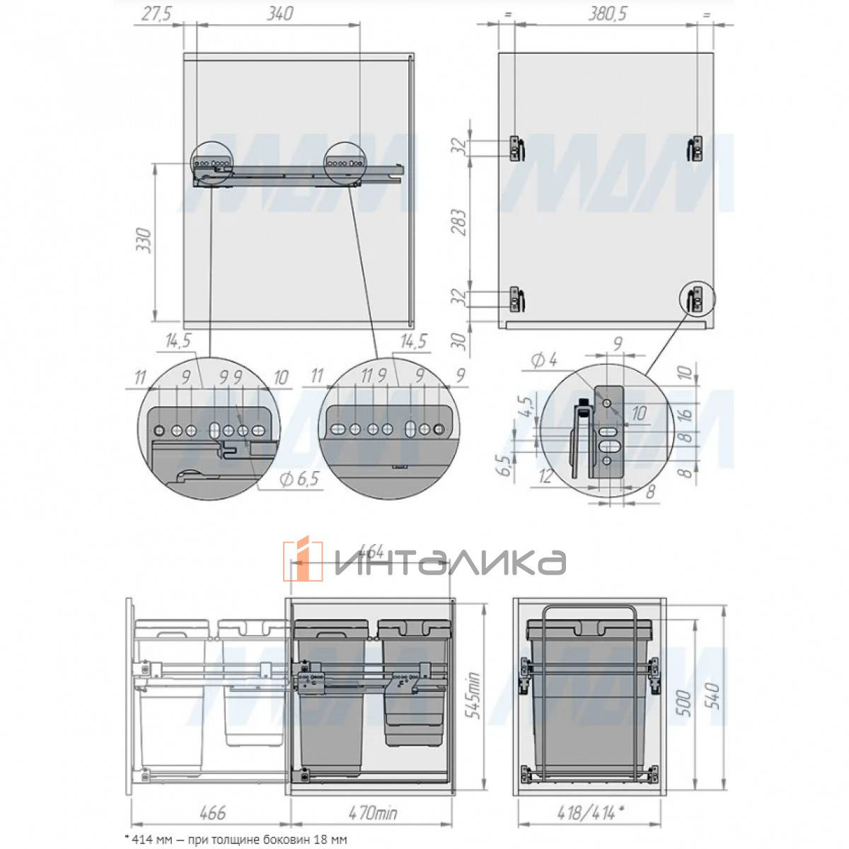 • толщина боковин корпуса из ДСП: 16, 18 мм (универсальный монтаж);