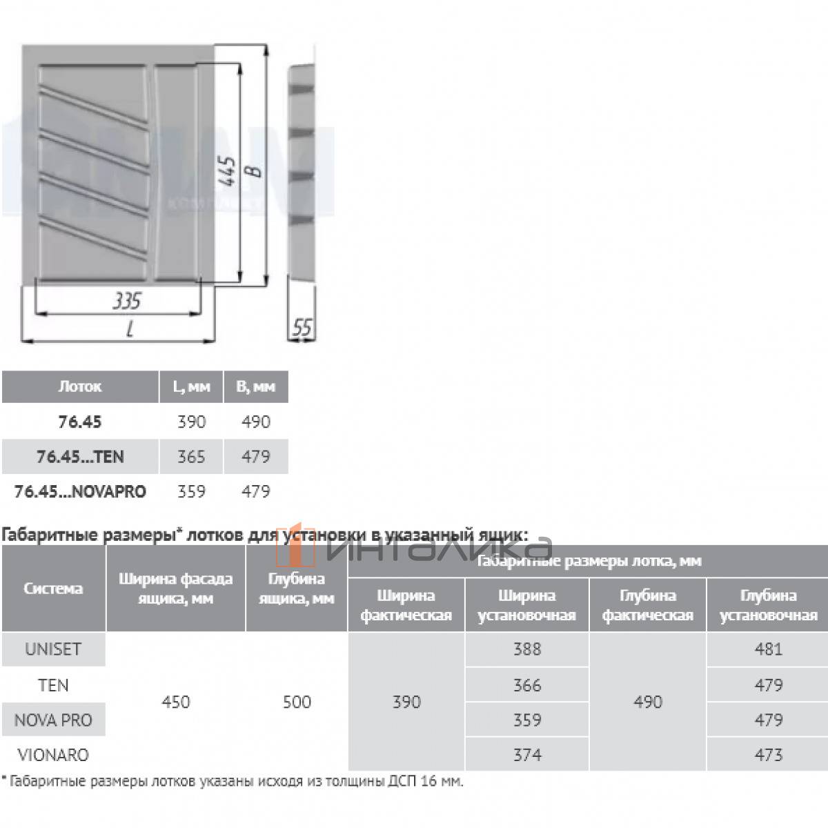 Лоток кухонный универсальный, для ящика с фасадом 450 мм, графит матовый, 76.45.GPM