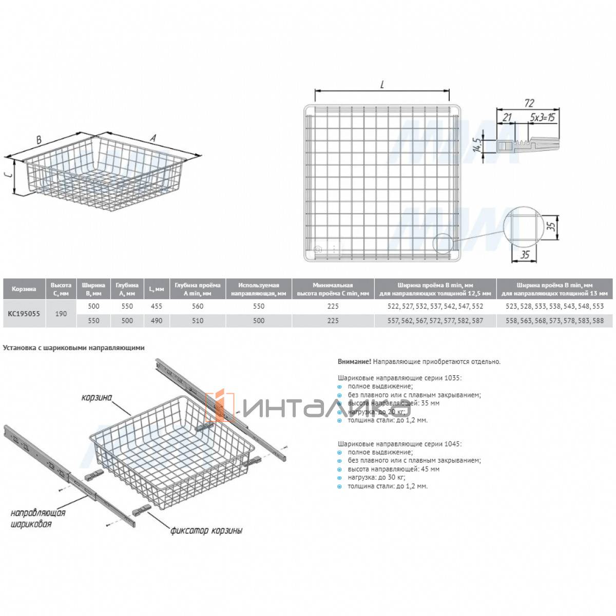 Для установки корзины рекомендуется использовать шариковые или роликовые направляющие.