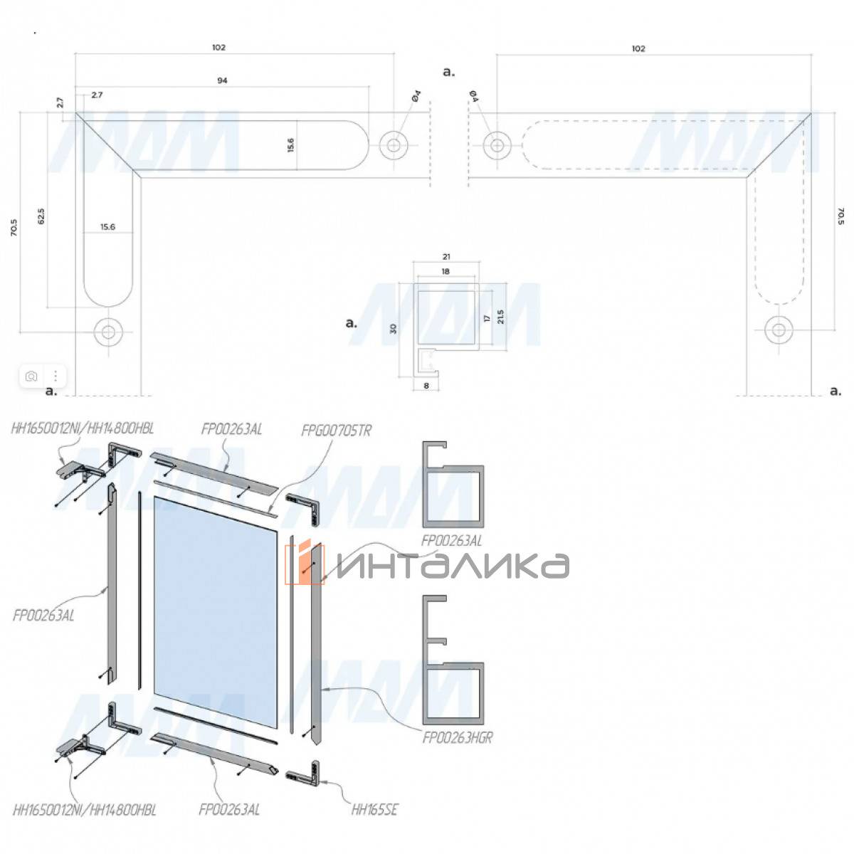 Комплектация: сборочный уголок - 4 шт., винт никель - 18 шт, винт чёрный - 18 шт.