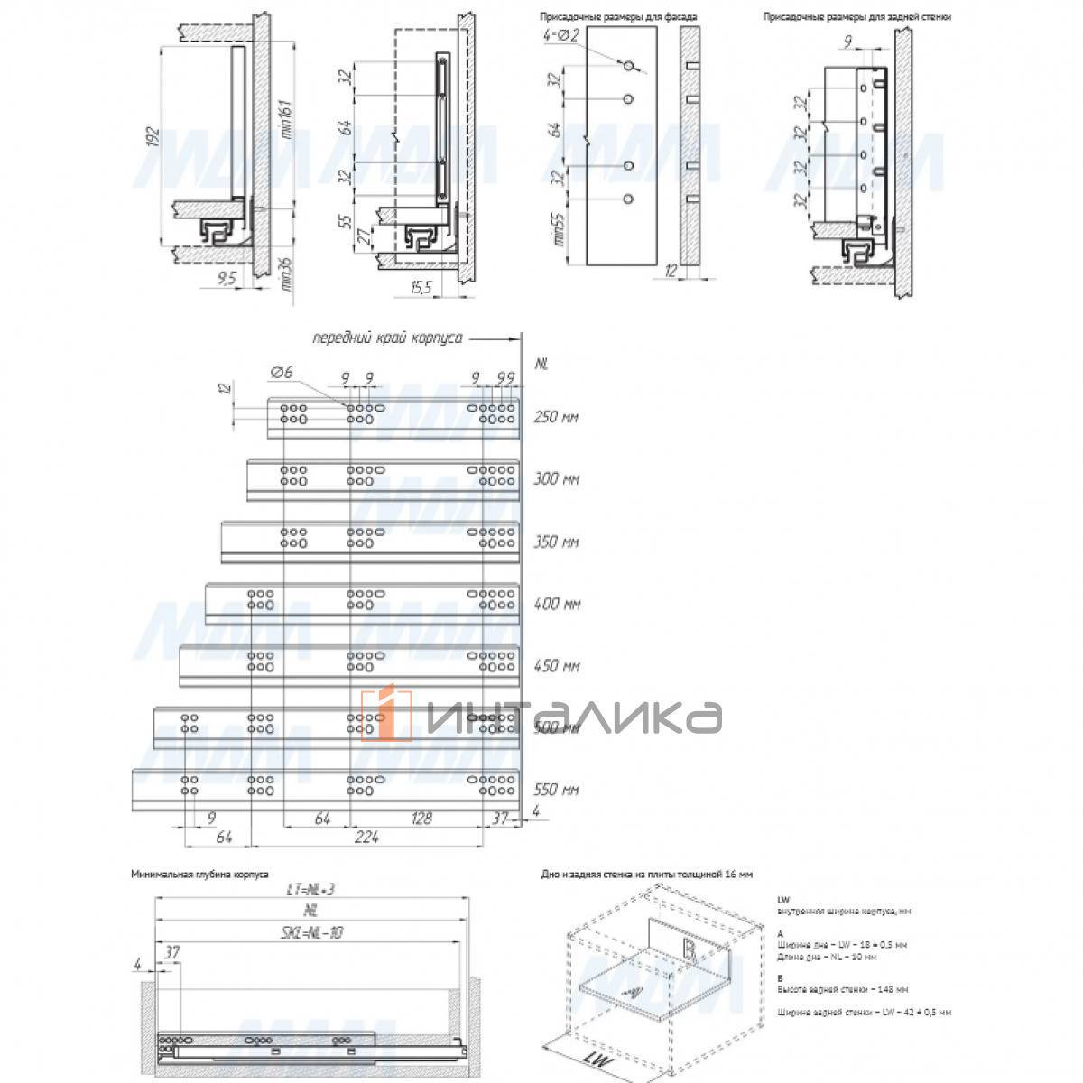 LS BOX комплект ящика 450 мм, цвет графит (боковины h173 мм с направляющими плавного закрывания), LS173450GP