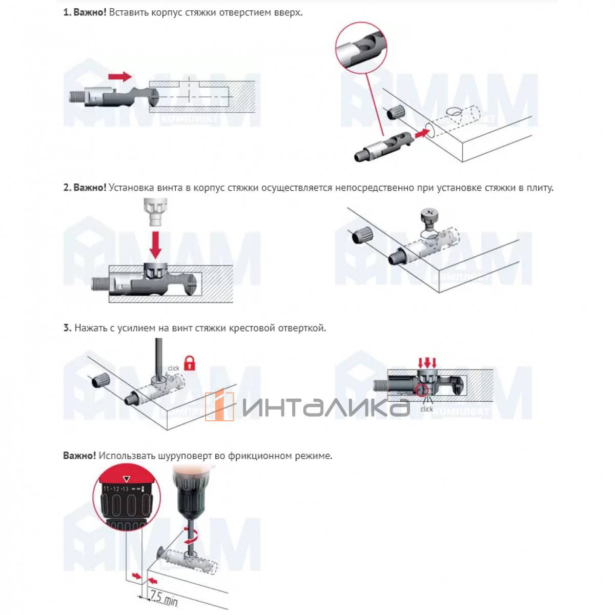 Важно! Установка винта в корпус стяжки осуществляется непосредственно при установке стяжки в плиту.