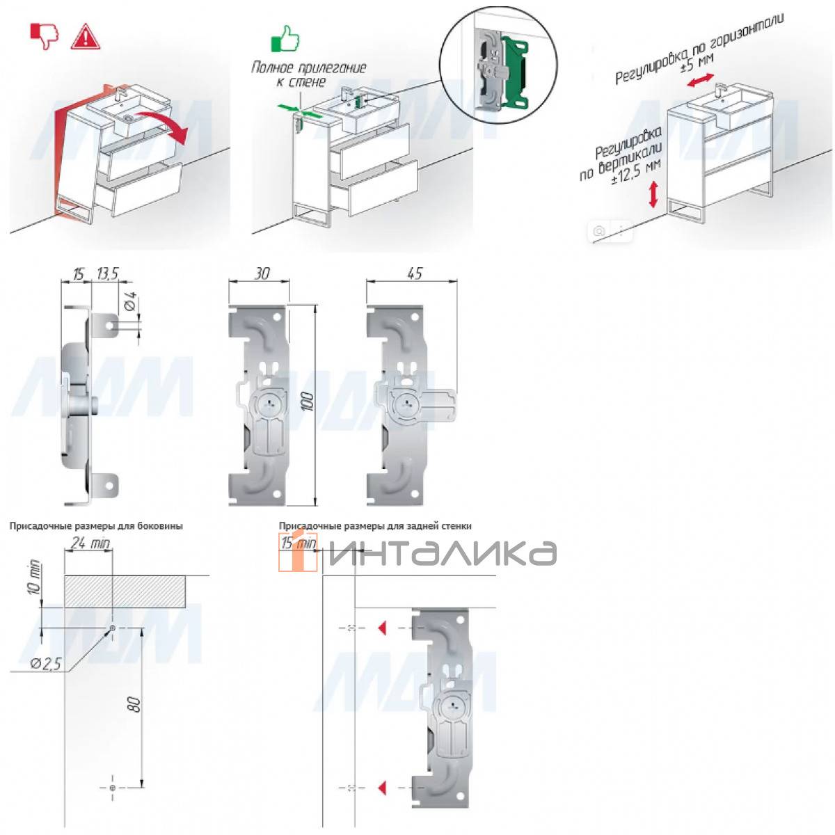 Регулировки: по вертикали — ±12,5 мм, по горизонтали — ±5 мм