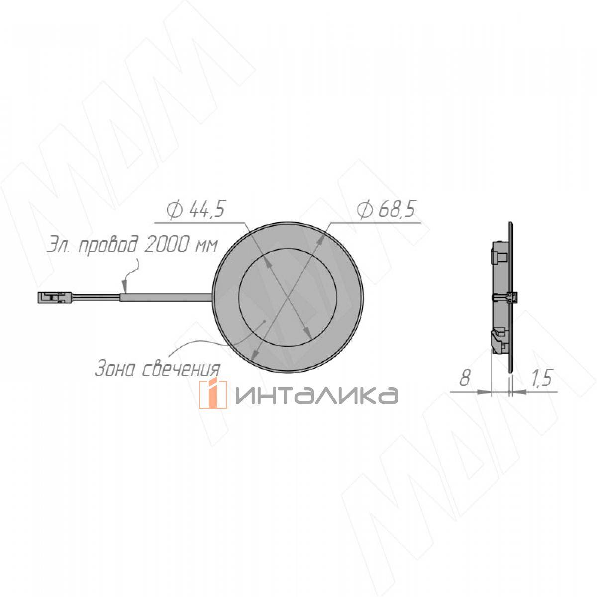Применение: точечный врезной светильник для декоративной и функциональной подсветки; идеально подходит для мебели в стиле модерн