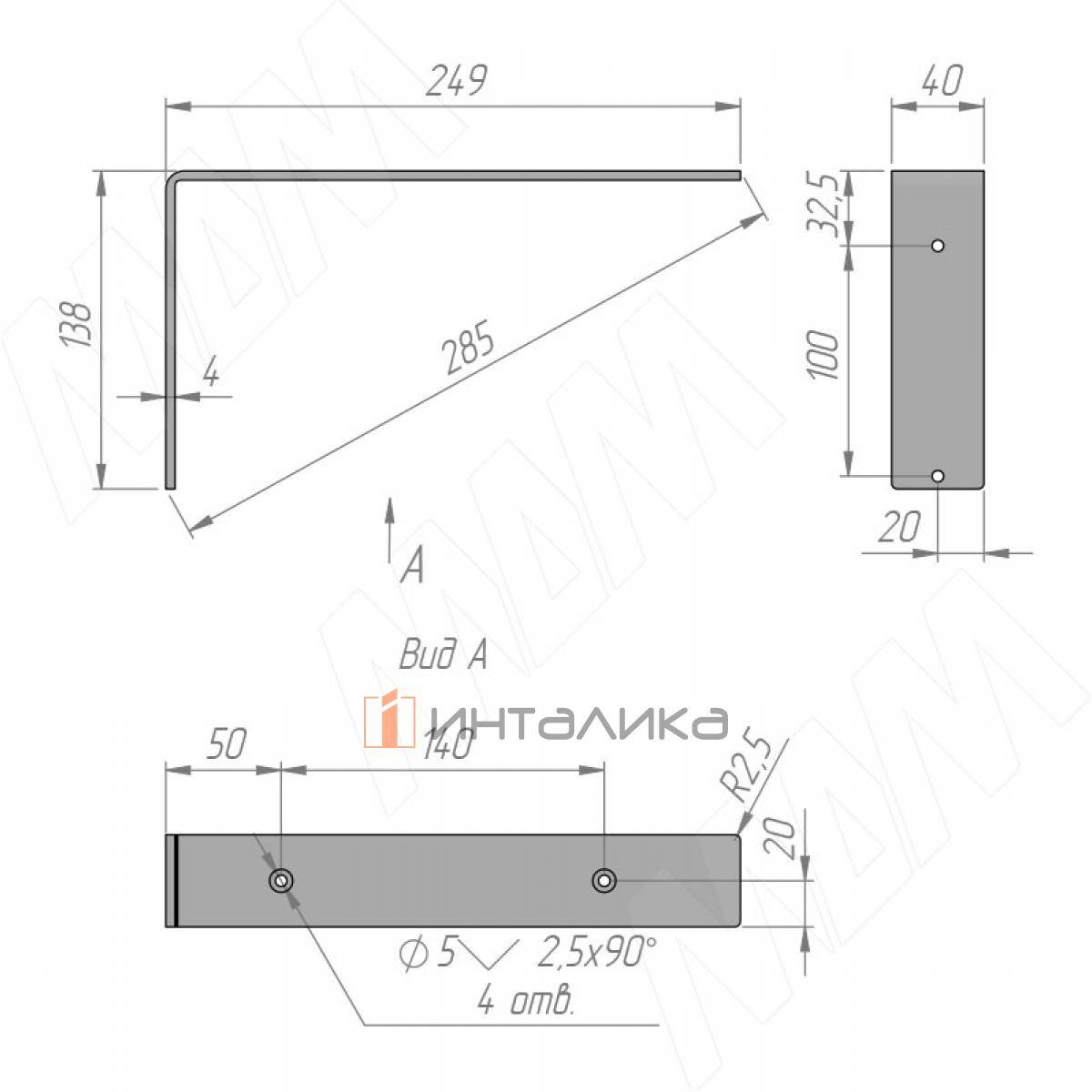 Комплектация: менсолодержатель — 2 шт., крепёж (саморез 6×50 мм — 4 шт., саморез 3,5×16 мм — 4 шт., дюбель 6×50 мм — 4 шт.)
