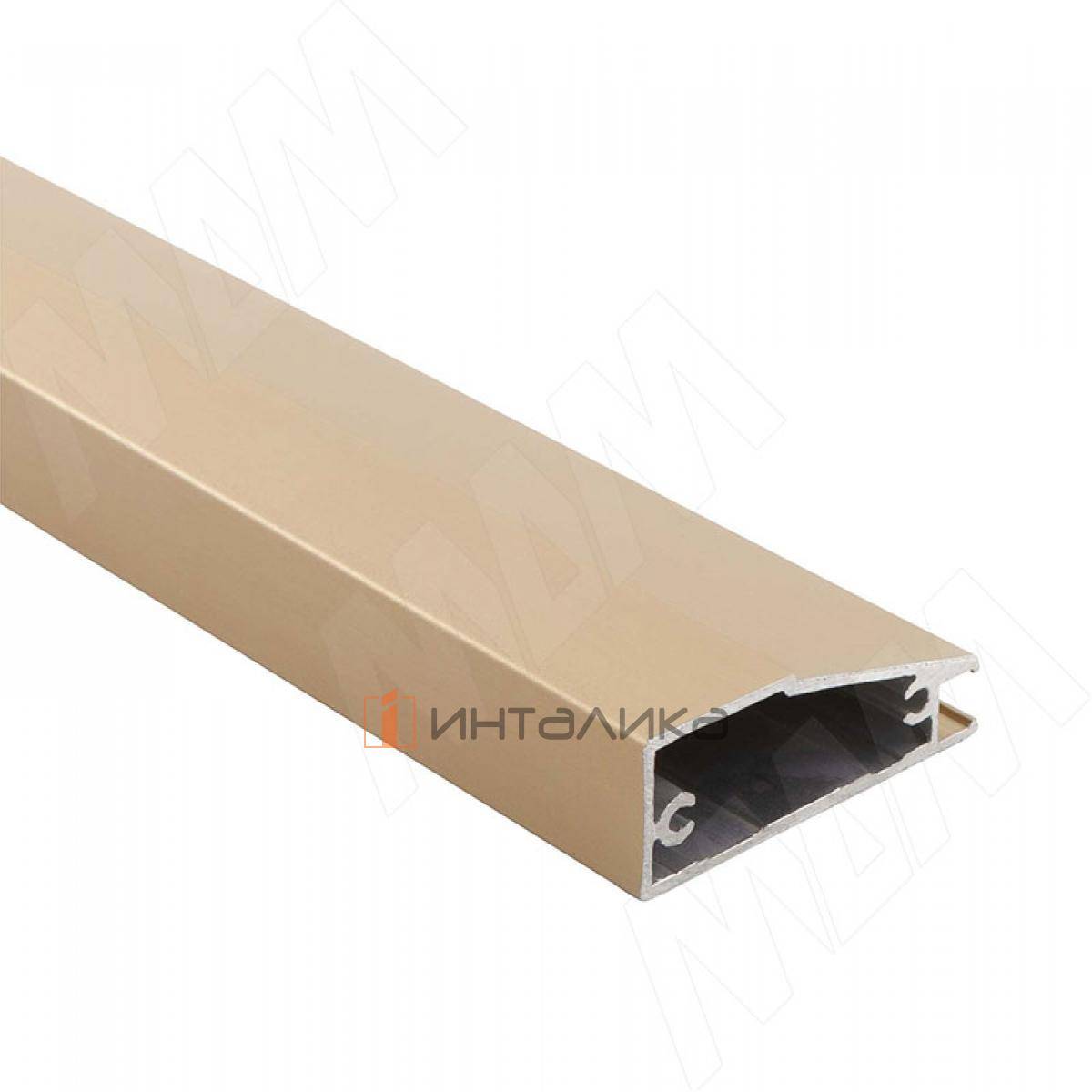 IRIS — это широкий рамочный профиль с наклонной видимой частью; используется для изготовления мебельного фасада под вставку из стекла толщиной 4 мм; для установки данного профиля используются стандартные четырехшарнирные петли с чашкой 35 мм