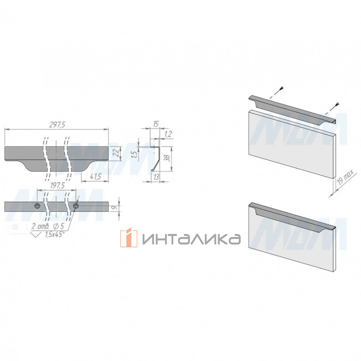 Профиль-ручка 300мм крепление саморезами графит, 27.300.9712
