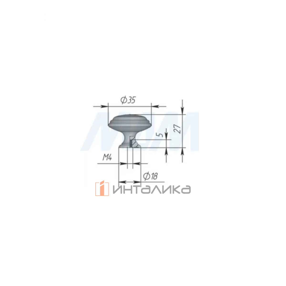 Ручка-кнопка D35мм черный матовый/керамика черная глянец, WPO.P77.07.00.N4G