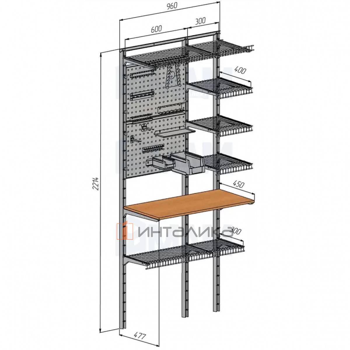 Примечание: от сетчатой полки арт. HS400*1250MT необходимо отрезать 3 части по 350 мм каждая, чтобы получить полки для проёма 300 мм