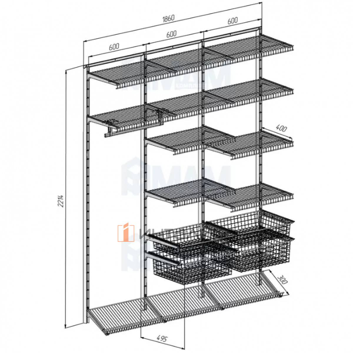Home Space, гардероб ширина 1860мм, глубина 495 мм, 3 проема по 600 мм, HSK1860x495MT6