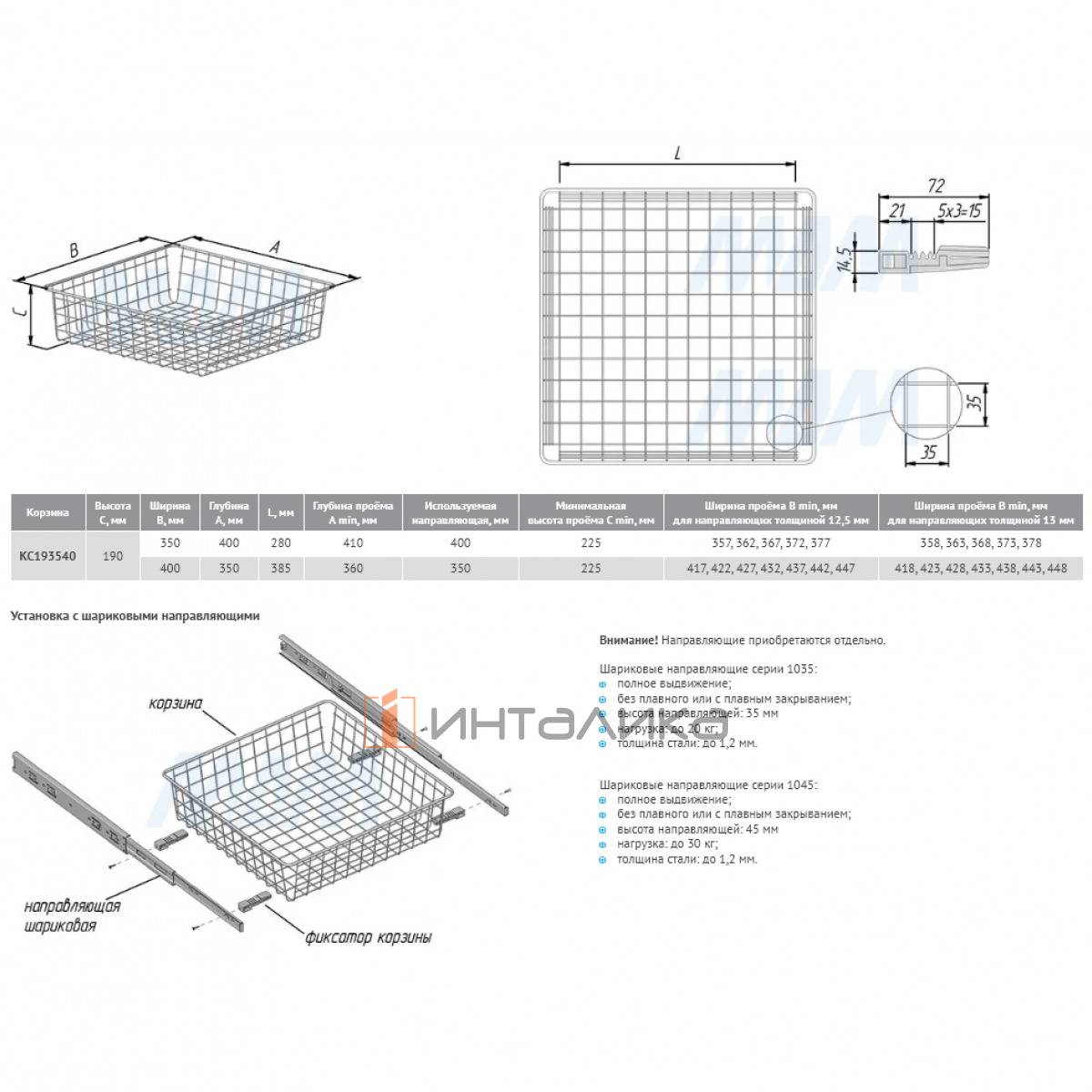 Для установки корзины рекомендуется использовать шариковые или роликовые направляющие.