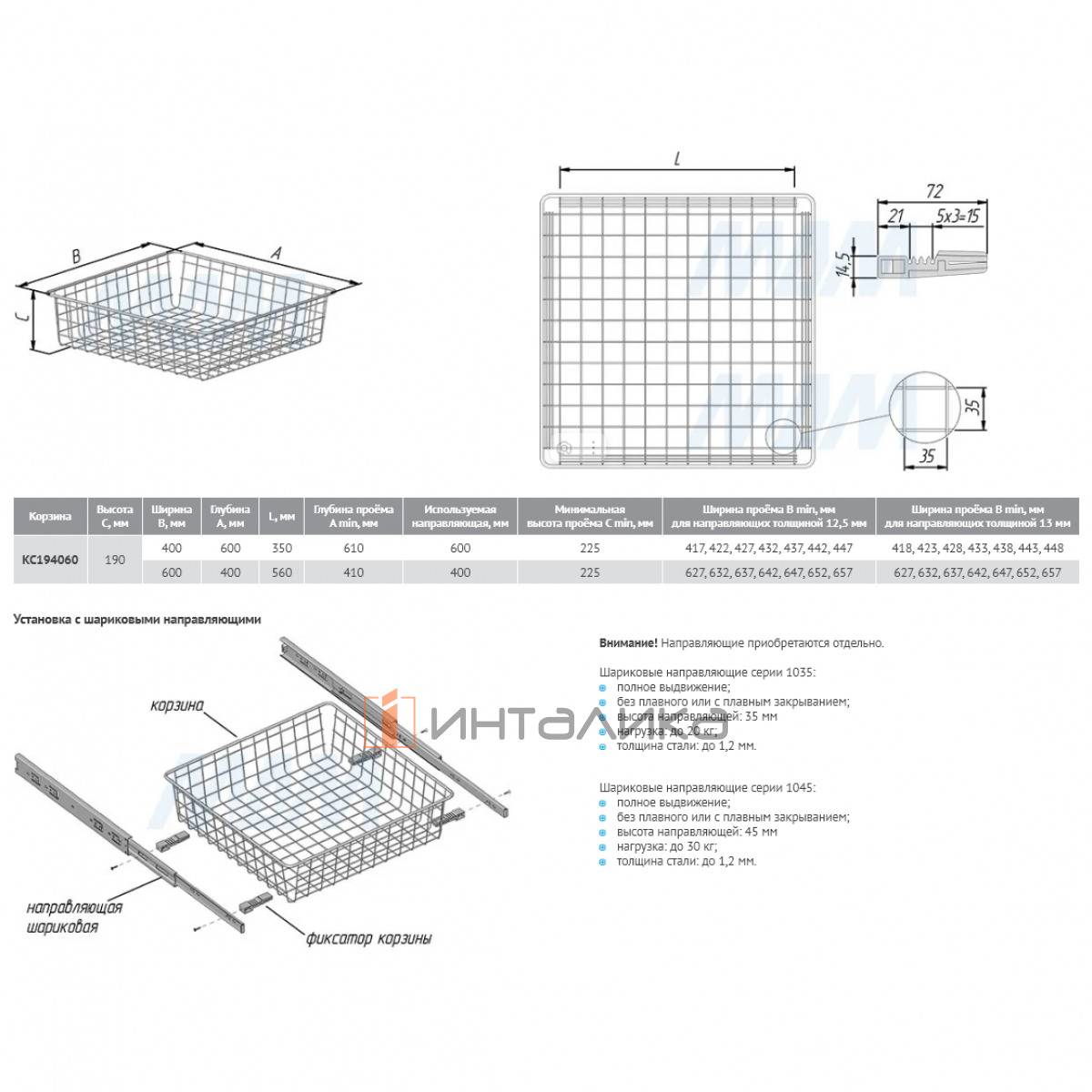 Для установки корзины рекомендуется использовать шариковые или роликовые направляющие.